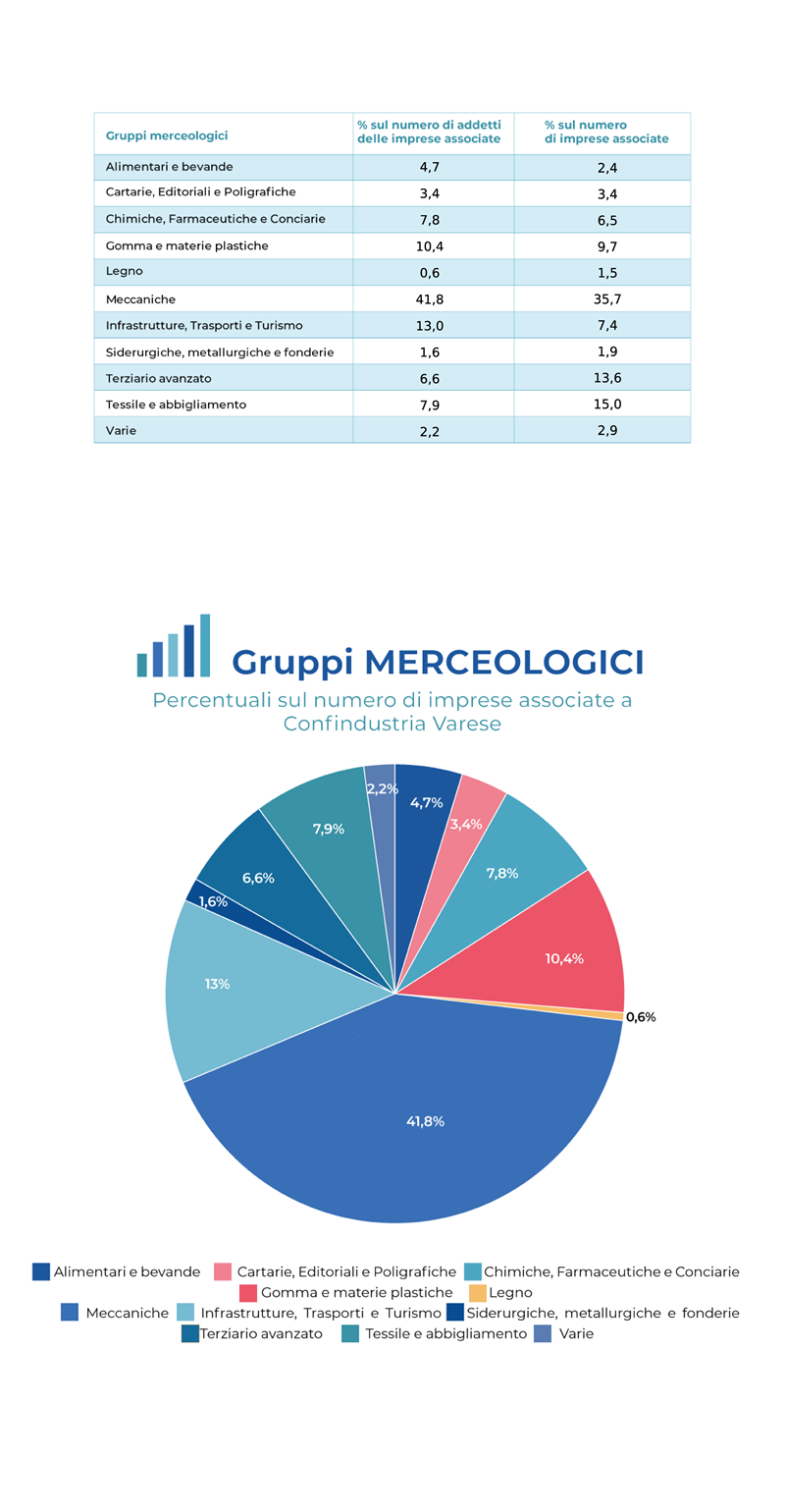 I Gruppi Merceologici di Confindustria Varese per numero di imprese e addetti